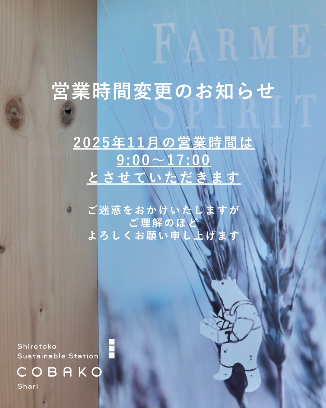 【営業時間】11月から変更のお知らせ📢 2025.11.1
