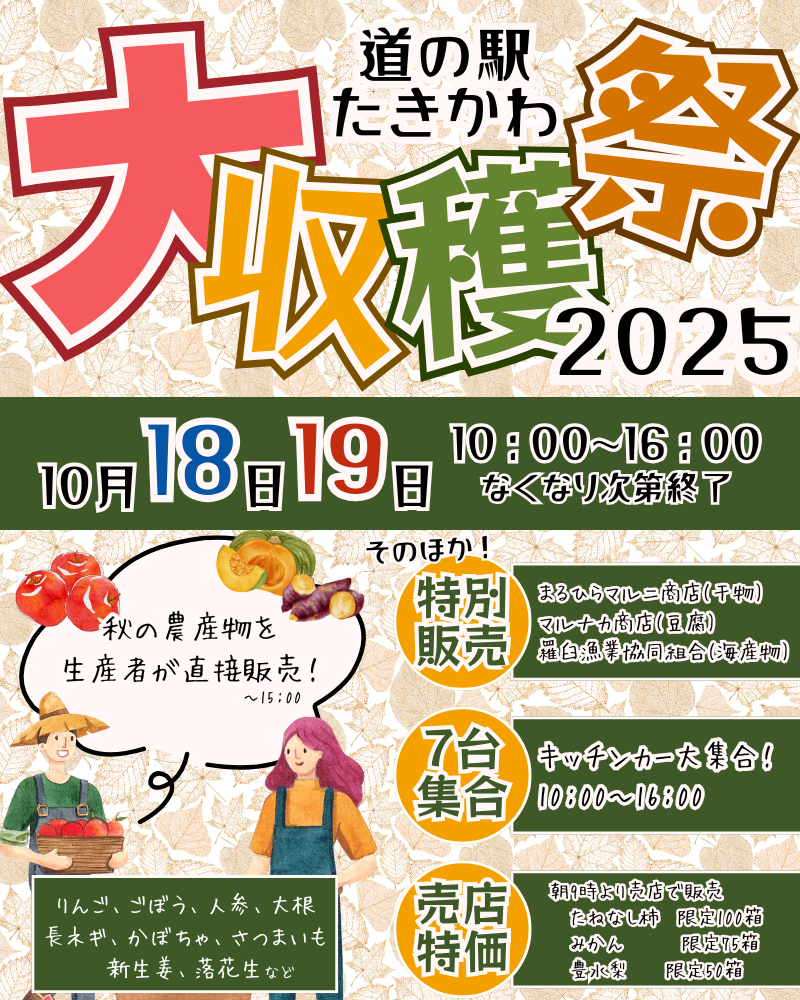 10月18日(土)、19日(日)は道の駅たきかわ大収穫祭! 2025.10.9