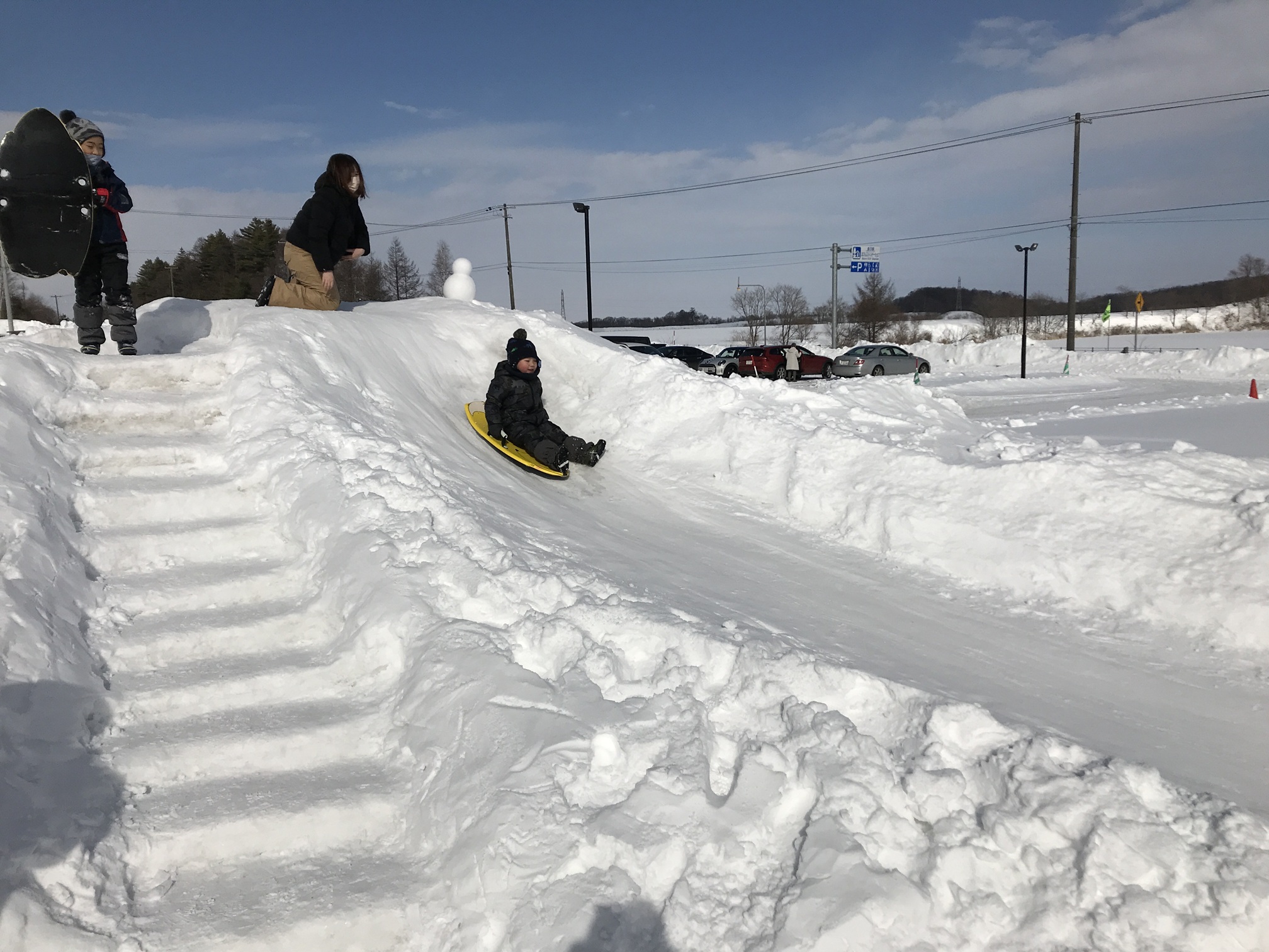 D51ステーションに今年も雪山が出現!大人も子どももそりやゴムチューブで、我を忘れて思いっきり滑りまくろう!