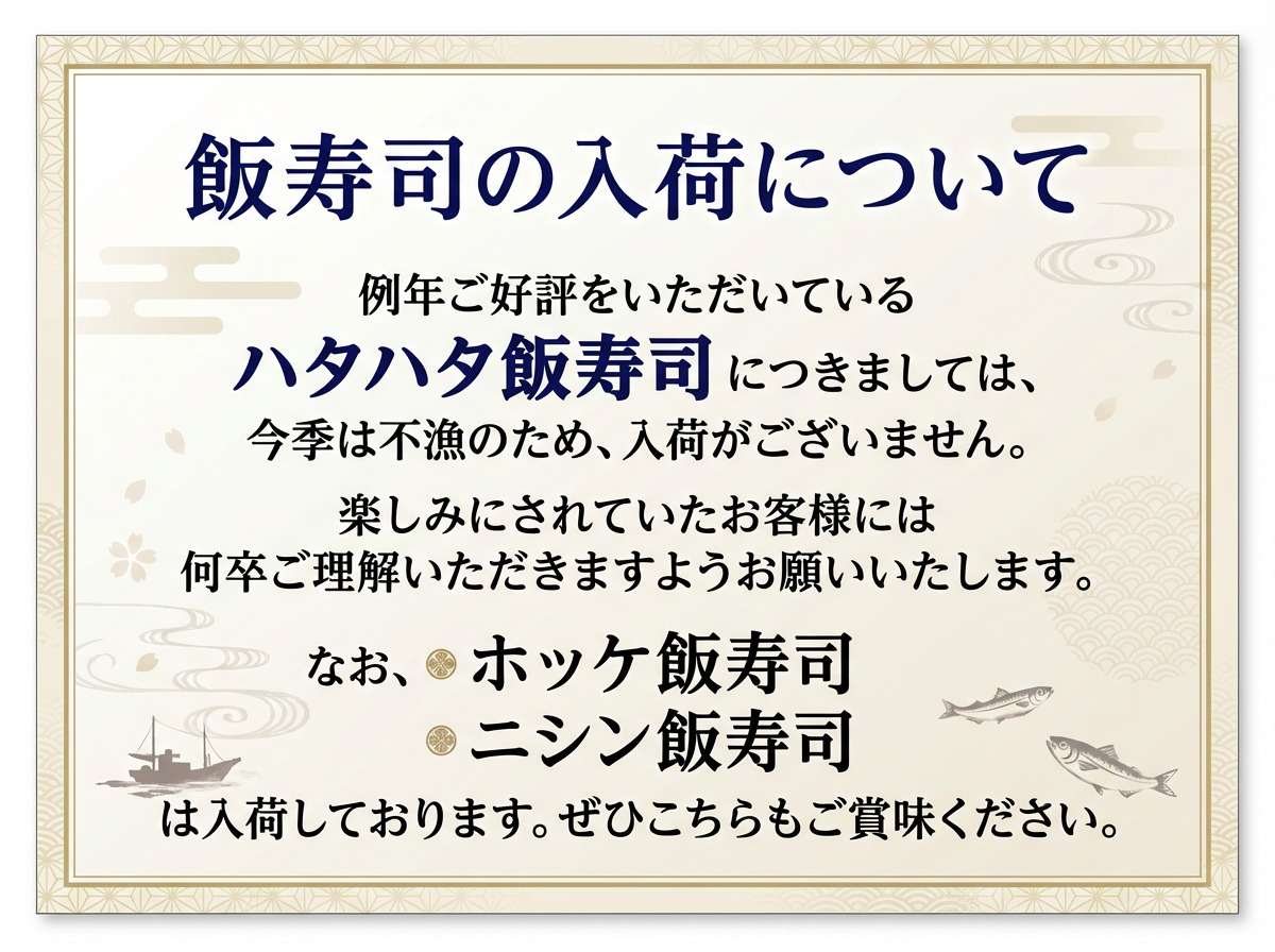 ・ホッケ飯寿司:完売(※再入荷時期未定)