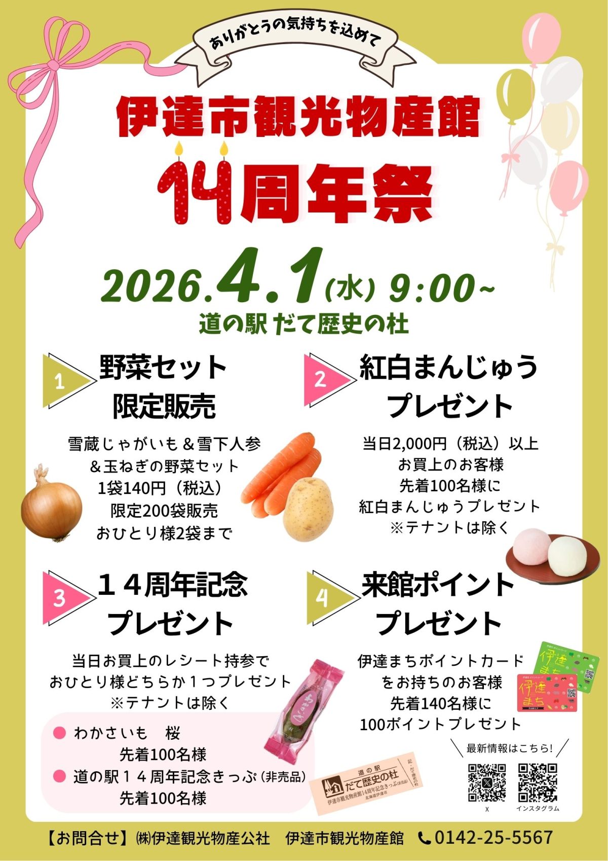 道の駅だて歴史の杜「伊達市観光物産館」は4月1日で14周年🎵