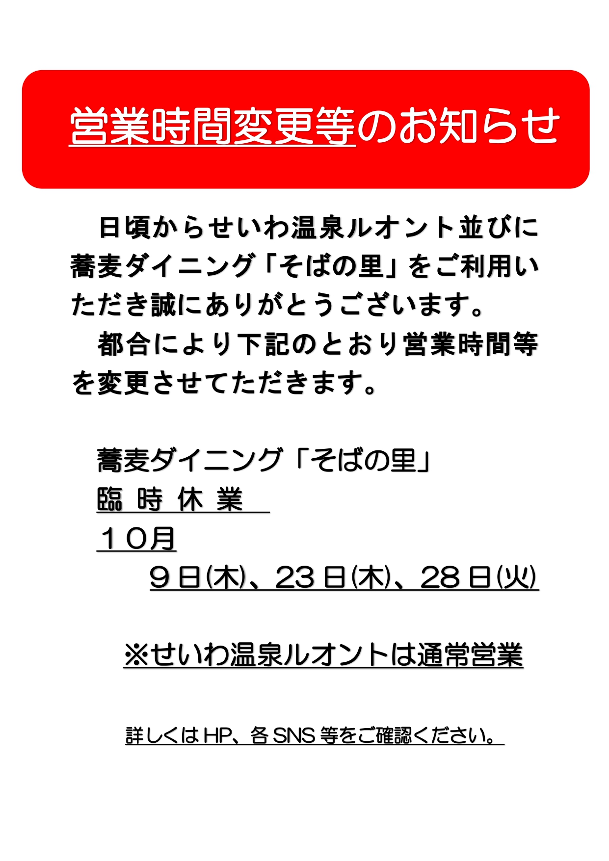 【営業時間変更等のお知らせ】