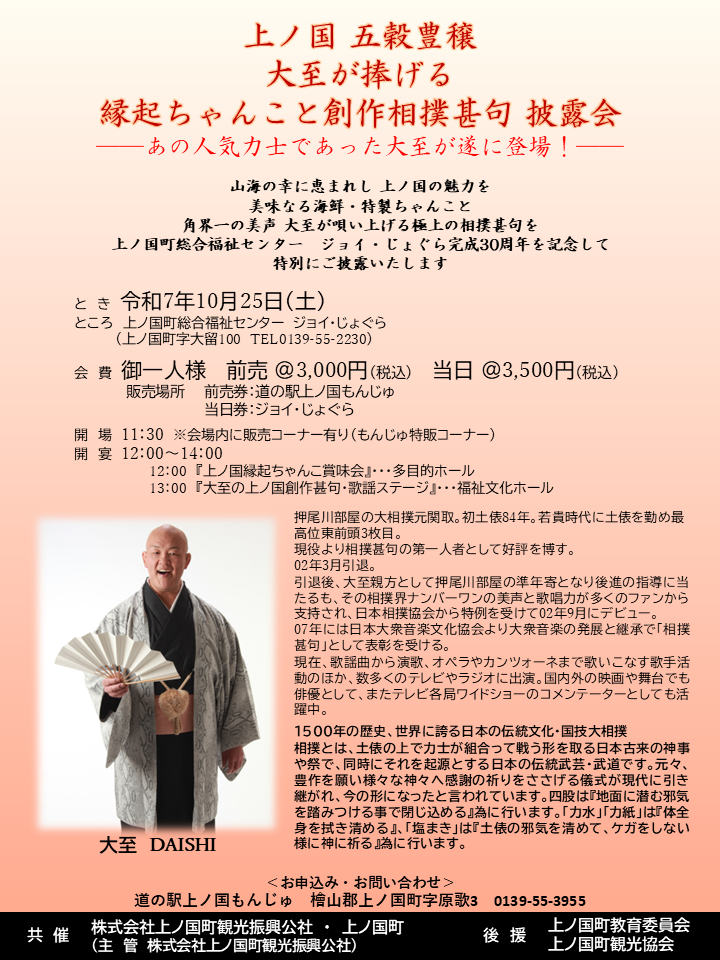 【上ノ国 五穀豊穣 大至が捧げる縁起ちゃんこと創作相撲甚句 披露会】