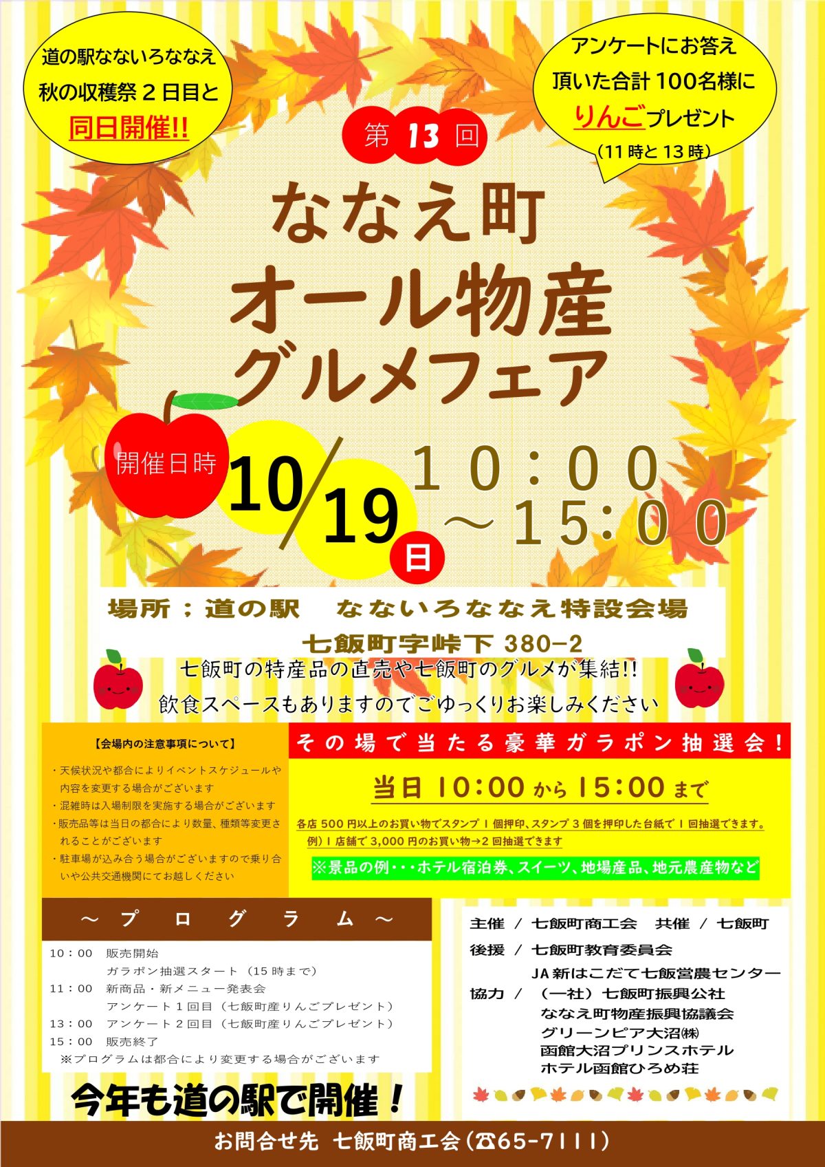 また、19日(日)には七飯町の特産品の直売やグルメが集まる『ななえ町オール物産グルメフェア』も同時開催!!