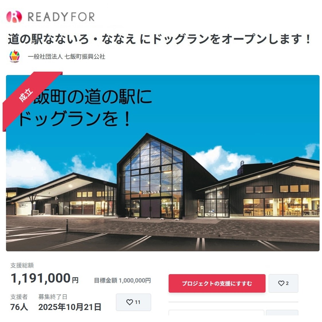 【道の駅なないろ・ななえ 無料ドッグラン開設プロジェクト成立!!🎊】