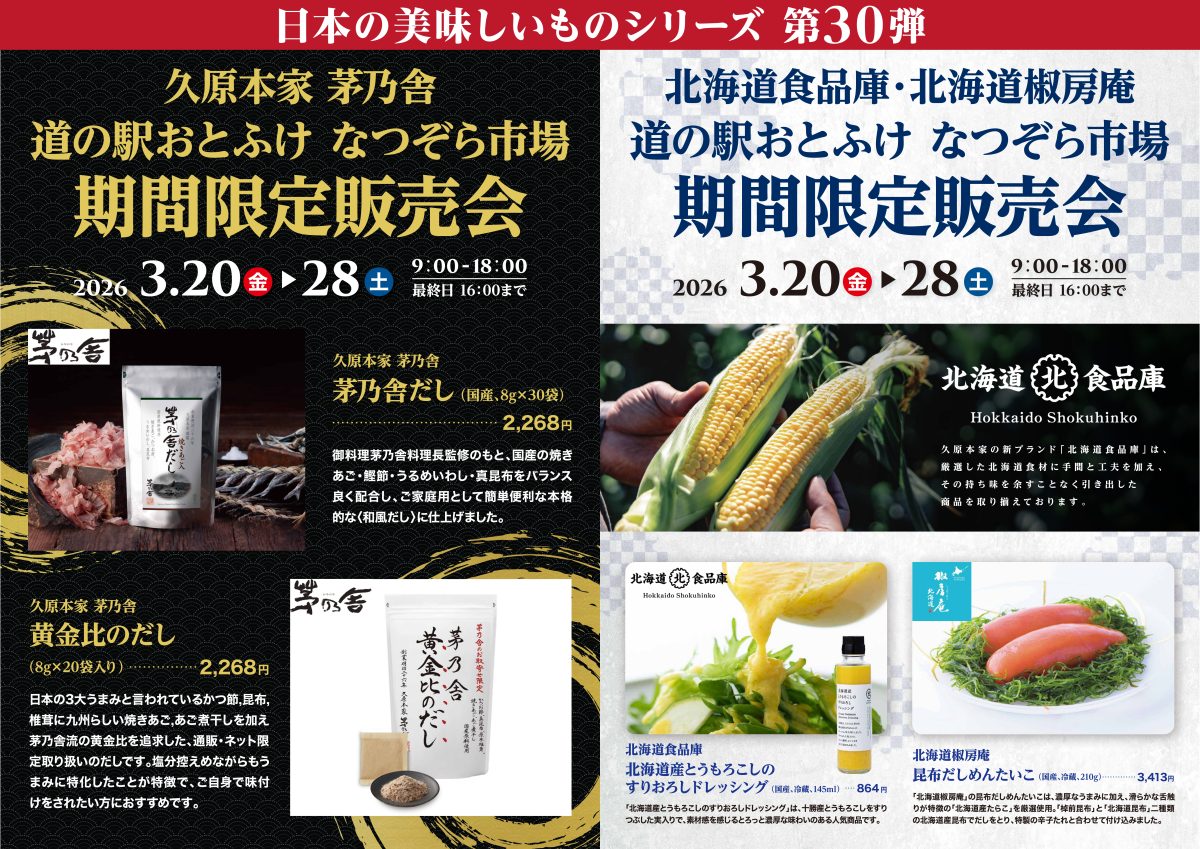 HOME > 各道の駅からのお知らせ > おとふけからのお知らせ > 【3月20日〜28日開催】久原本家 茅乃舎期間限定販売会