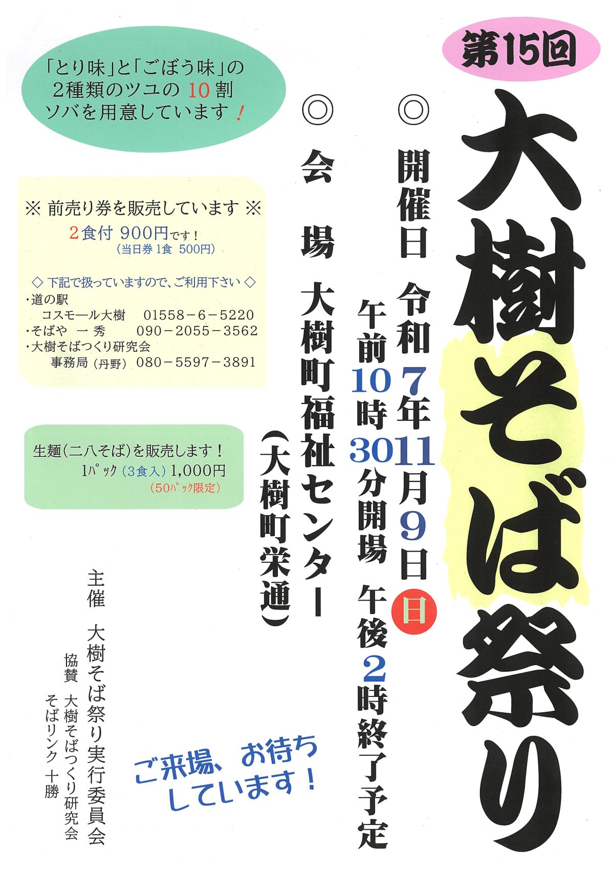 ≪2食付≫第15回大樹そば祭り”お得な前売券”販売のお知らせ