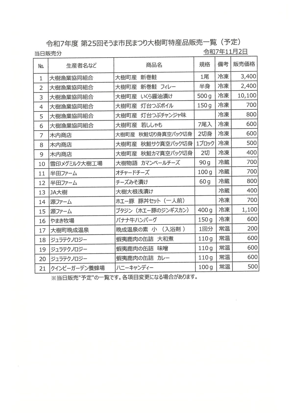 “そうま市民まつり”で大樹町の特産品を販売させて頂きます。