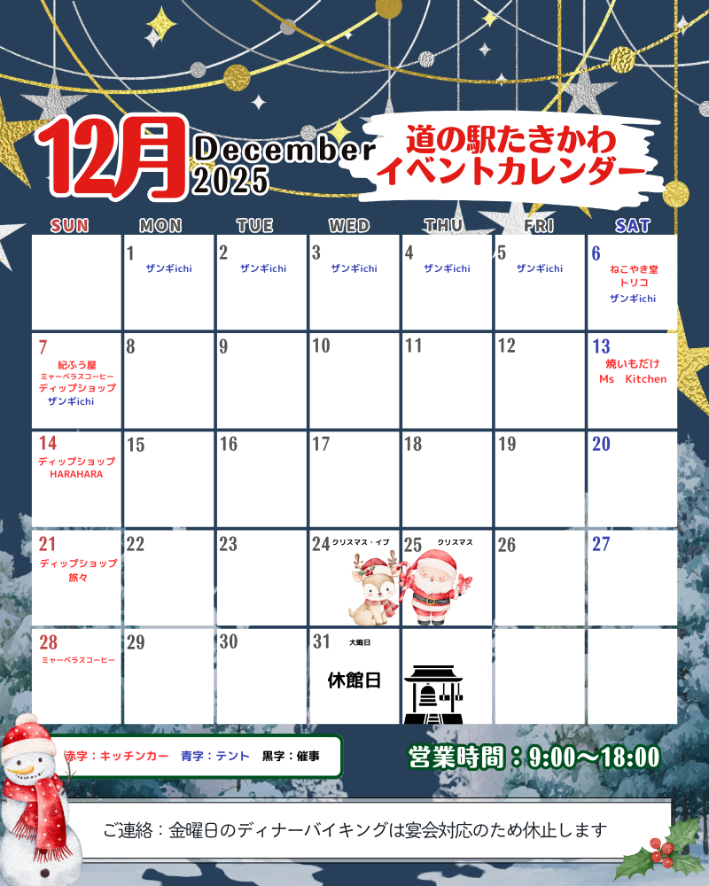 12月のキッチンカー日程、催事スケジュールのお知らせです💡