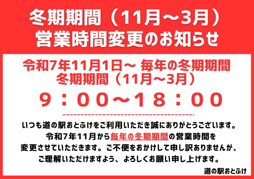 【重要なお知らせ】冬期期間 営業時間変更のお知らせ