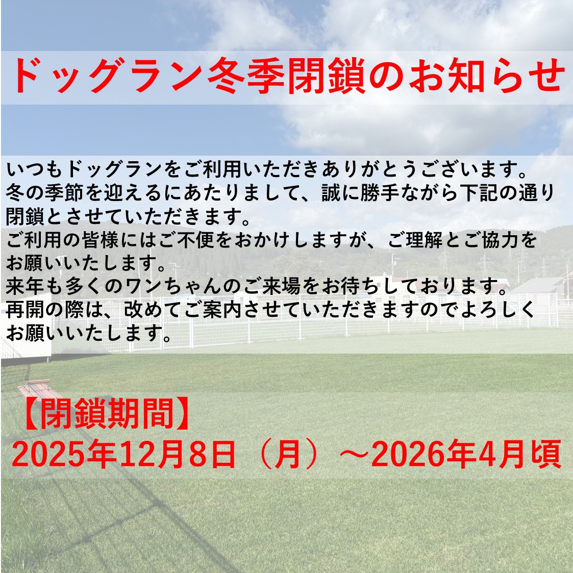 道の駅なないろ・ななえドッグランの冬季閉鎖について⛄
