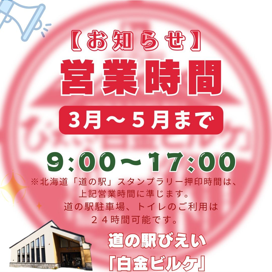 道の駅びえい「白金ビルケ」【3月~5月】営業時間について